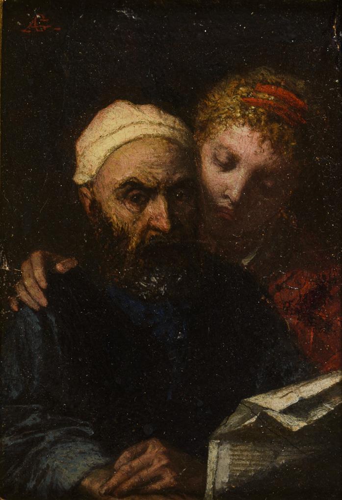 Kleines Altmeistergemälde mit Gelehrtem und Mädchen