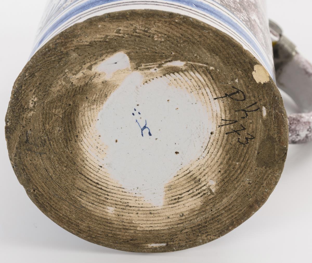 Blaue Pinselmarke "K" mit 3 Punkten auf Glasurfleck, wohl Nürnberg. Mitte 18. Jh.