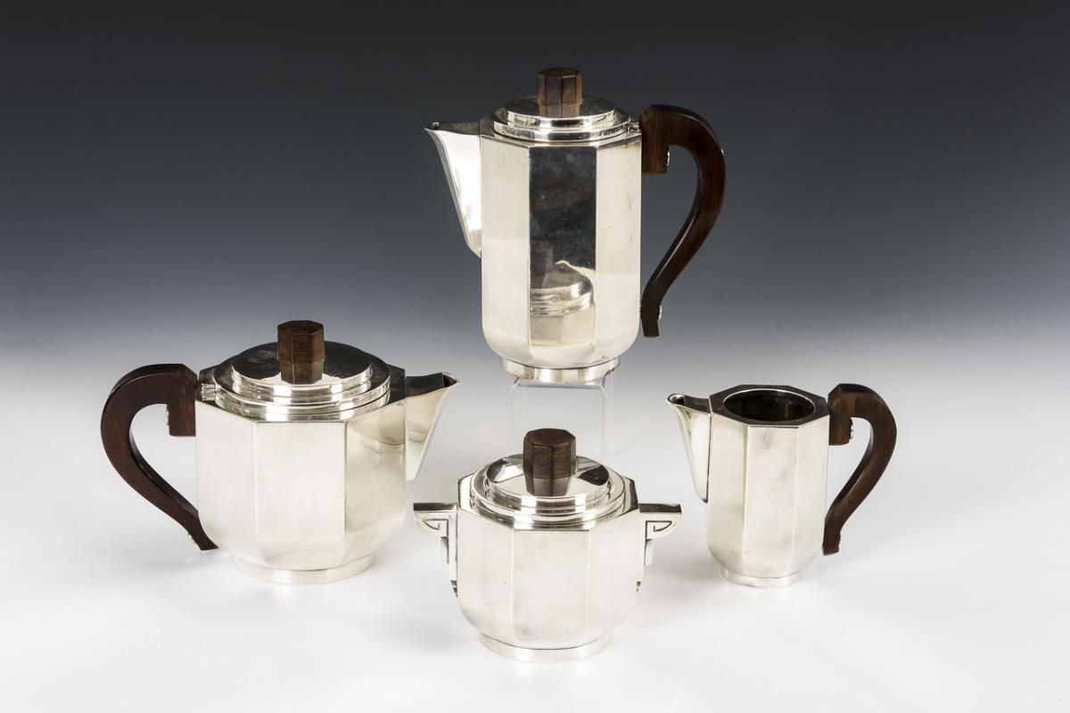 4-teiliges Art-déco-Kernstück mit Tablett. Durousseau & Raynaud.