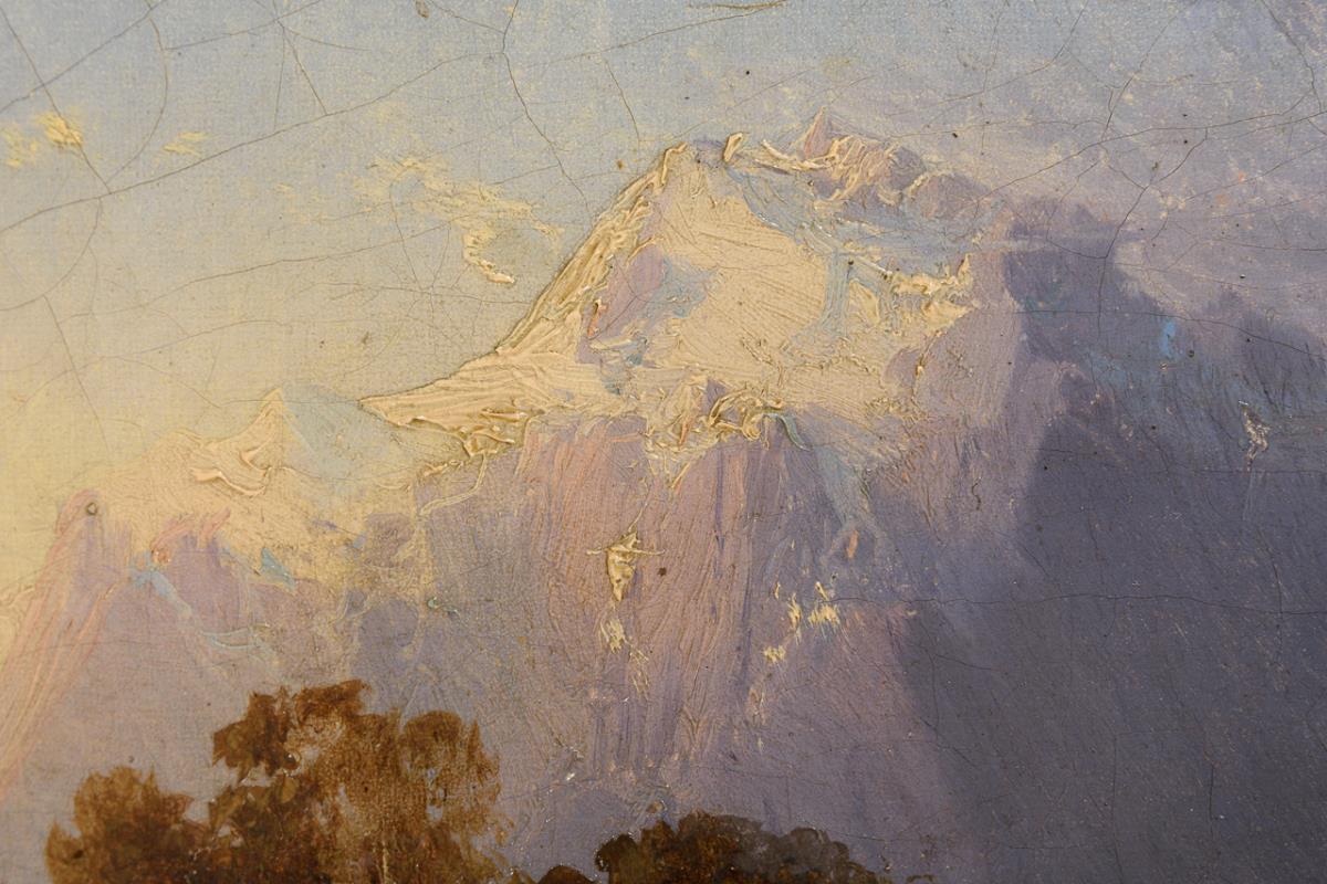 Paar fein gemalte Gemäldependants Alpenlandschaften in alten Stuckrahmen