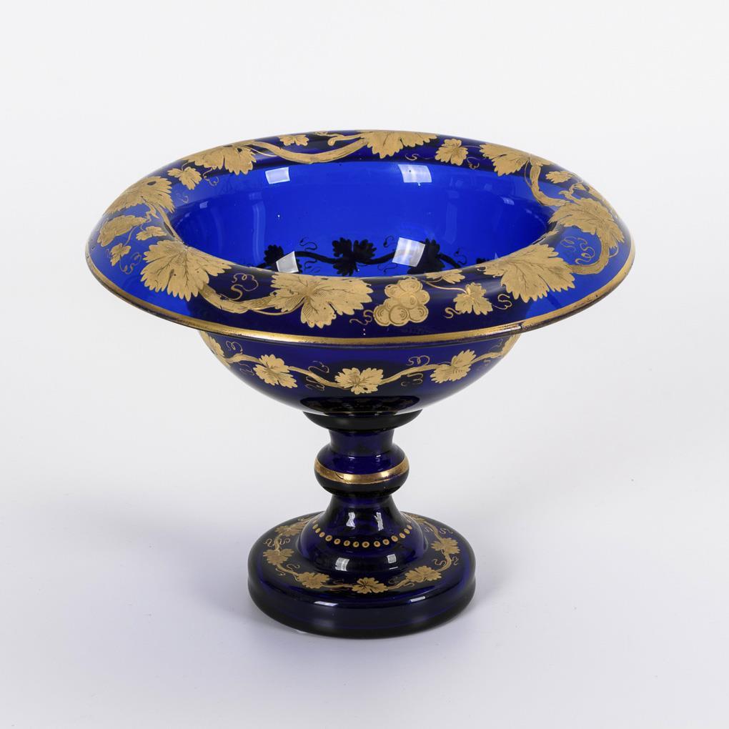Kobaltblaues Glas, Emailmalerei, Goldstaffage. H 15 cm.