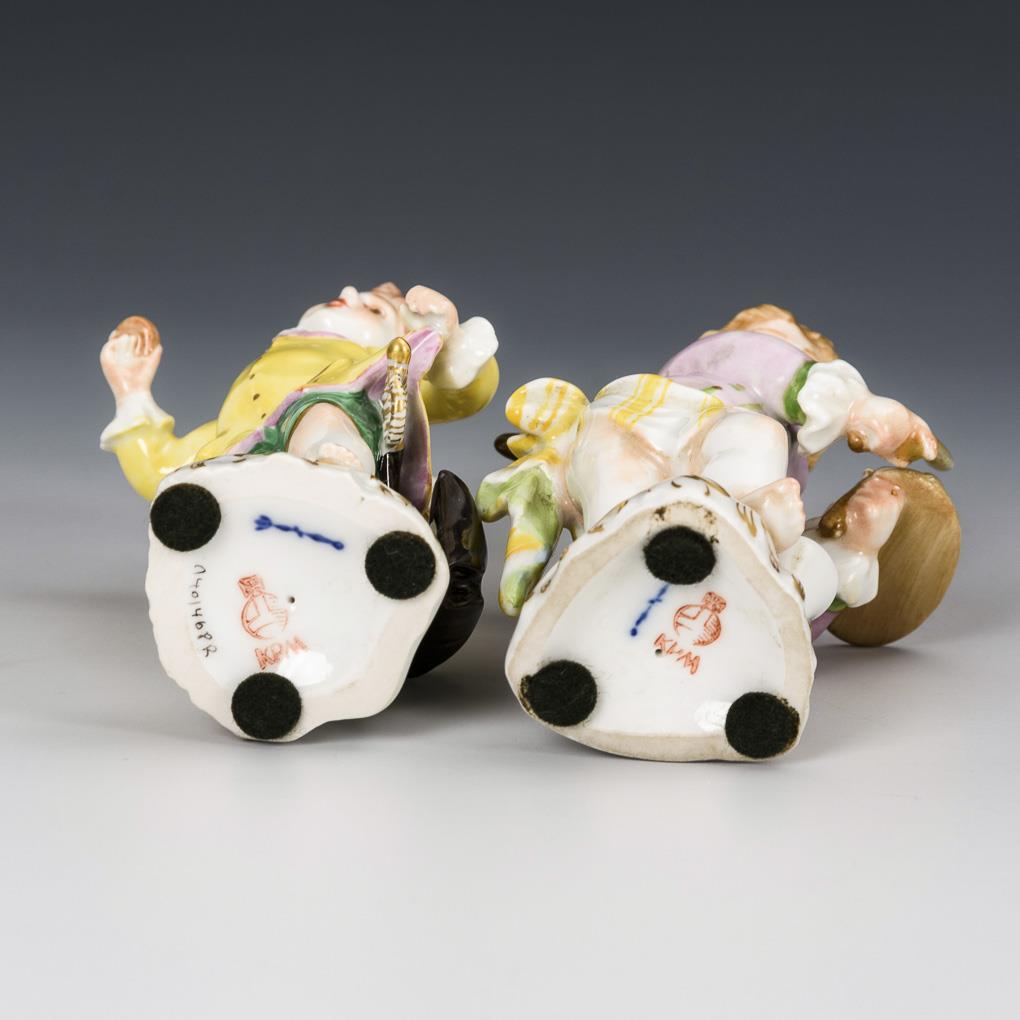 Putto mit Palette als Maler und Putto mit Tabatiere und Degen als Kavalier. 1x Flügel und Messer restauriert.