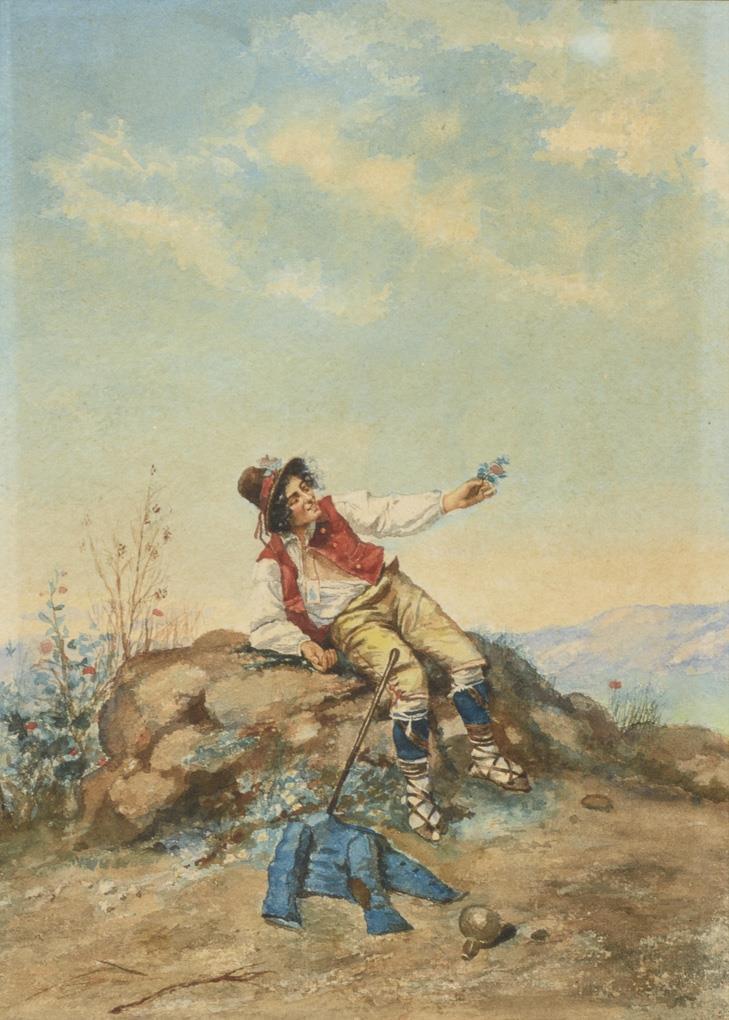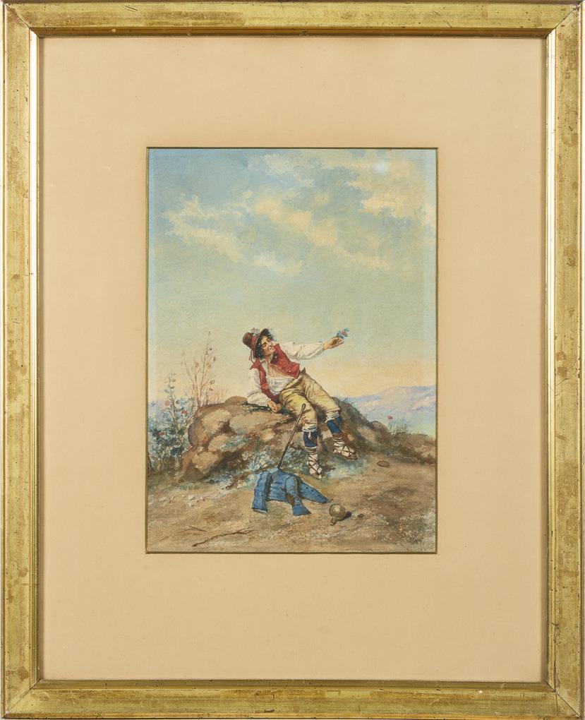 Aquarell mit italienischem Wanderburschen