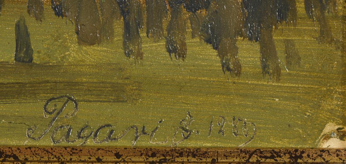 Öl/Malkarton. Links unten schwache Ritzsignatur, rechts unten undeutlicher Zusatz. Datiert: 8.12.(18)89.