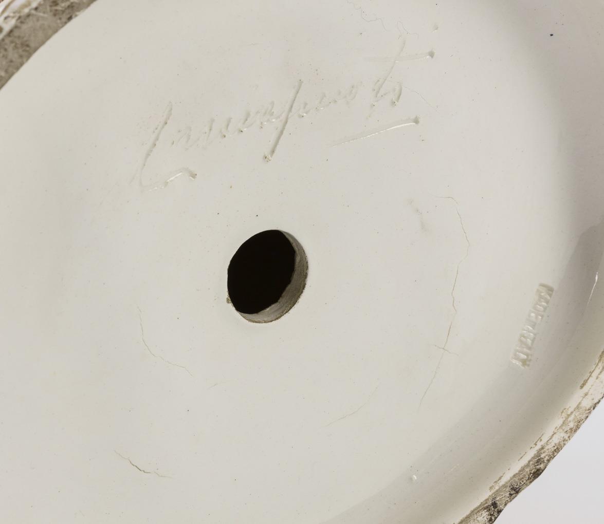 Fayence, farb- und goldstaffiert. H 35 cm.