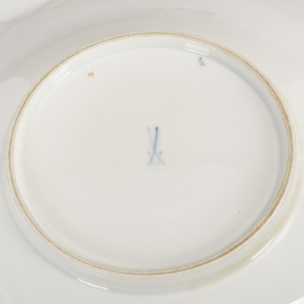 Schale mit Floralrelief, im Spiegel Blumenmalerei mit Nelke und Mimosen. Gold berieben.