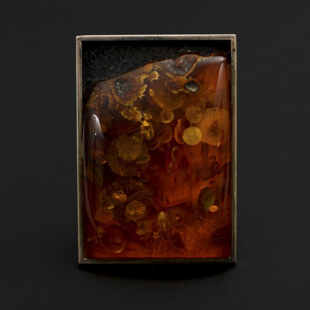 Großer Anhänger/Brosche mit Bernstein.