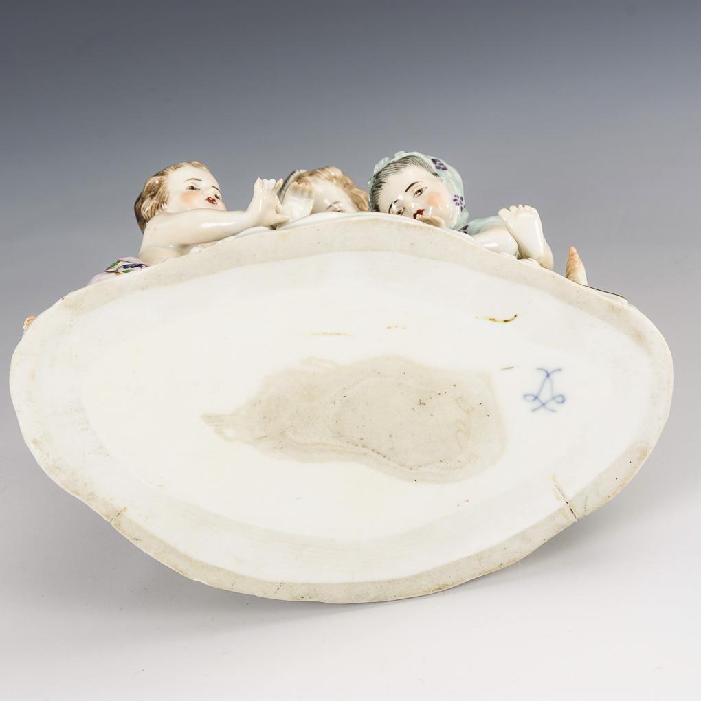 Gruppe von vier, sich an einem Feuer wärmenden Putten. 2 Brandrisse am Sockelrand, 1 Hand bestoßen.
