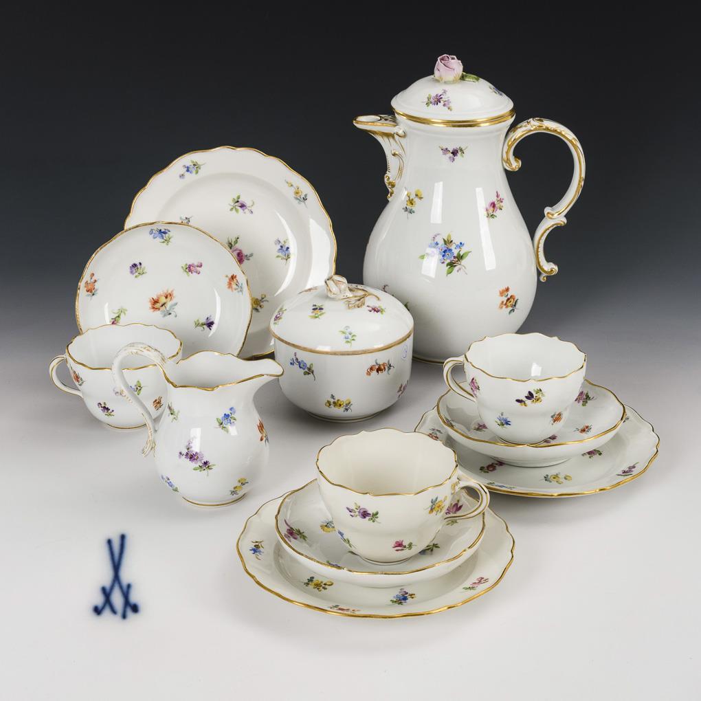 12 Teile eines Kaffeeservice mit Streublümchenmalerei. Meissen.