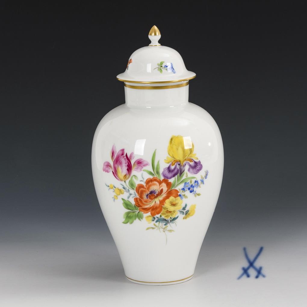 Deckelvase mit Blumenmalerei. Meissen.