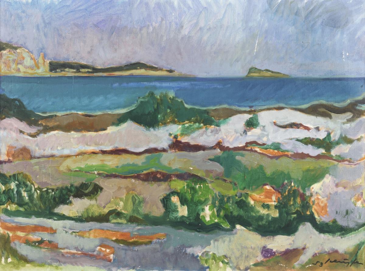 Undeutlich signiert: Sonnige Küstenlandschaft