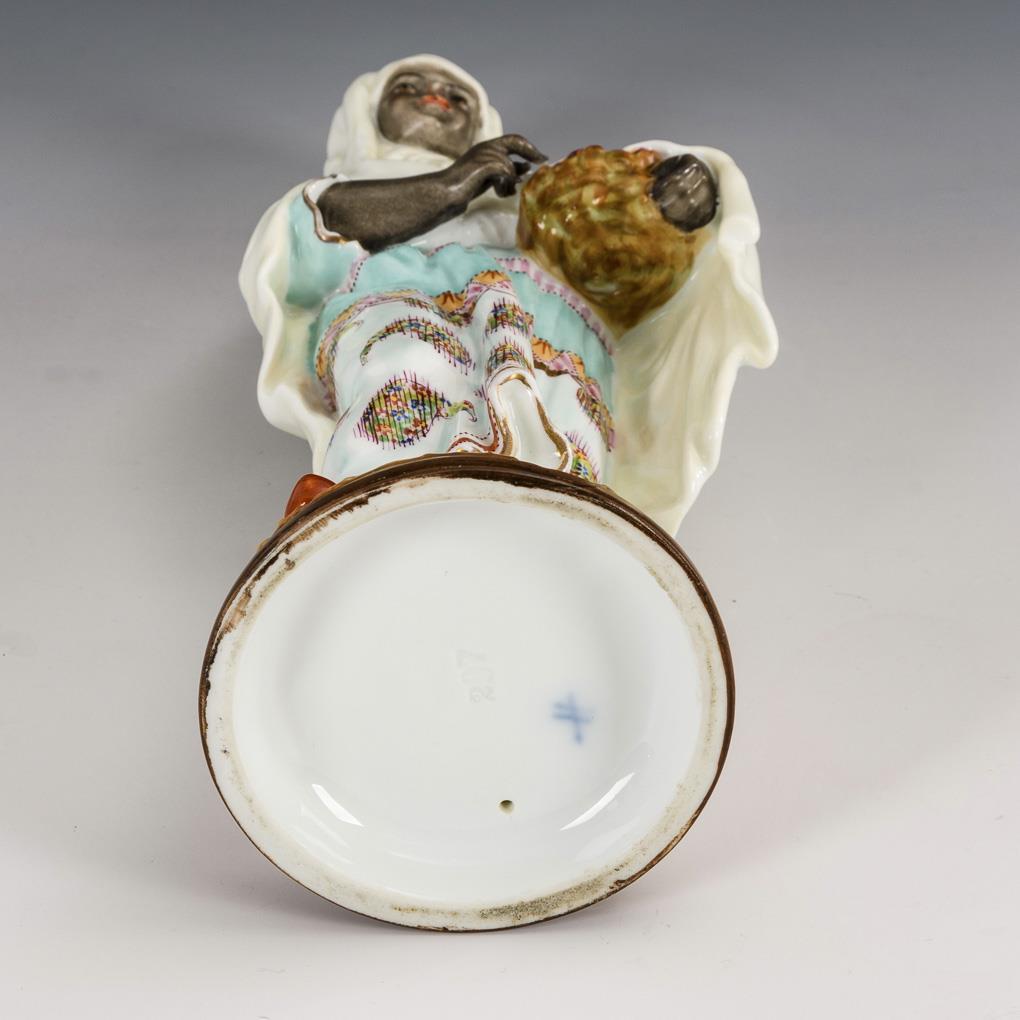 Plastik einer Afrikanerin mit Früchtekorb. Gold berieben.