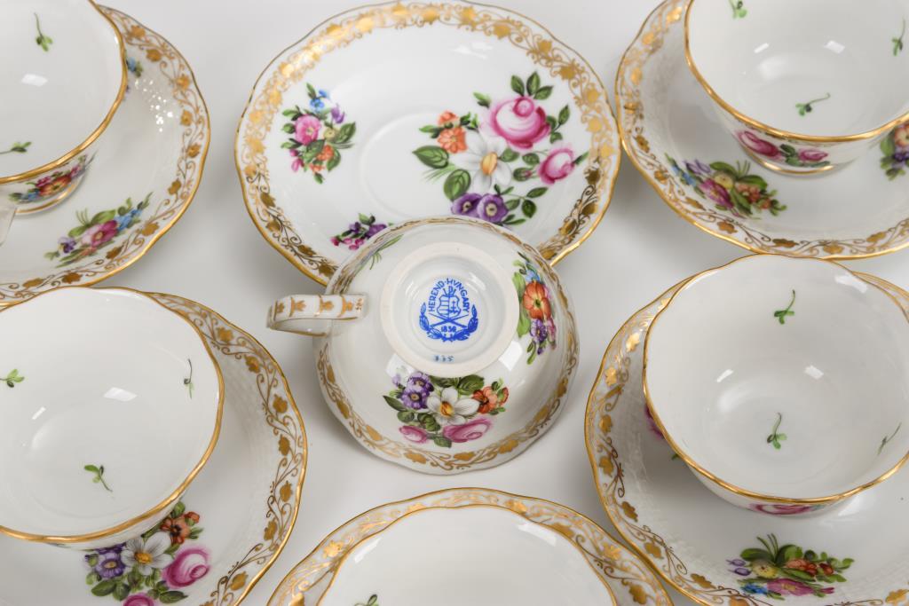 15 Teile. Mit Altozierrelief. Mokkakanne (H 17 cm), Zuckerdose (H 9,5 cm), Milchkännchen, 6 Mokkatassen mit 6 Untertassen. 1 Untertasse mit geklebtem Randausbruch.