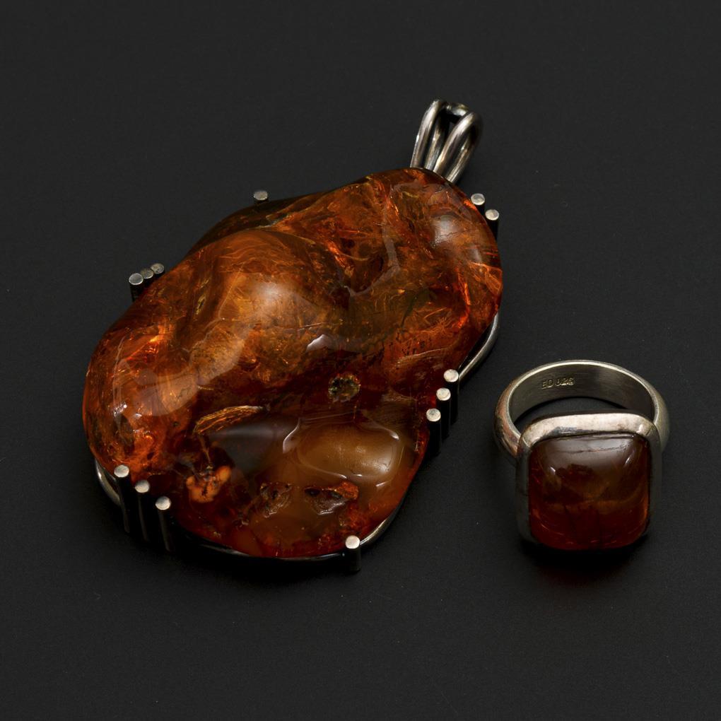 Silber 925 gestempelt. Anhänger 7,5 x 4,5 cm. Ringgröße 58. 43,9/11,7 g.