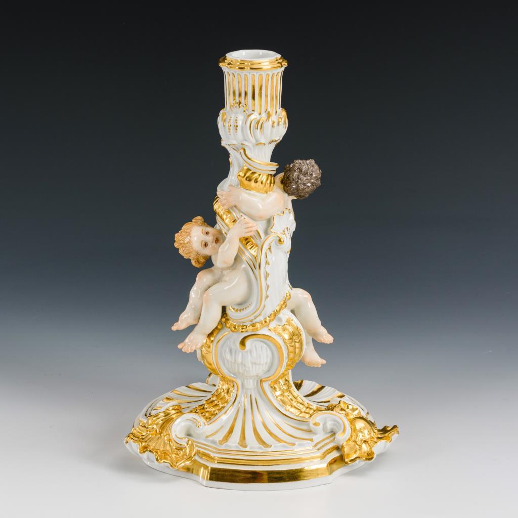 Rocailleleuchter mit zwei am Schaft sitzenden Putten.