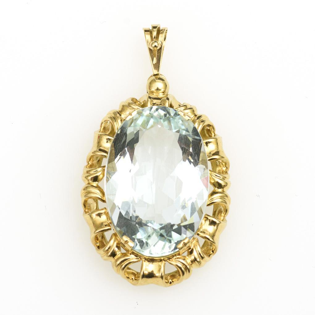 Krappengefasster, feiner Aquamarin in Zierrahmen.
