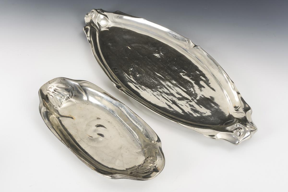 6 Teile Jugendstil-Zinn bzw. Silberzinn. 1x Kayserzinn, 1x Elektra, 1x Gallia-Metal.