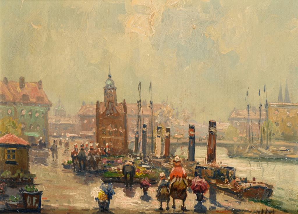 Viele Menschen auf dem Blumenmarkt am Hafen an einem sonnigen Tag.