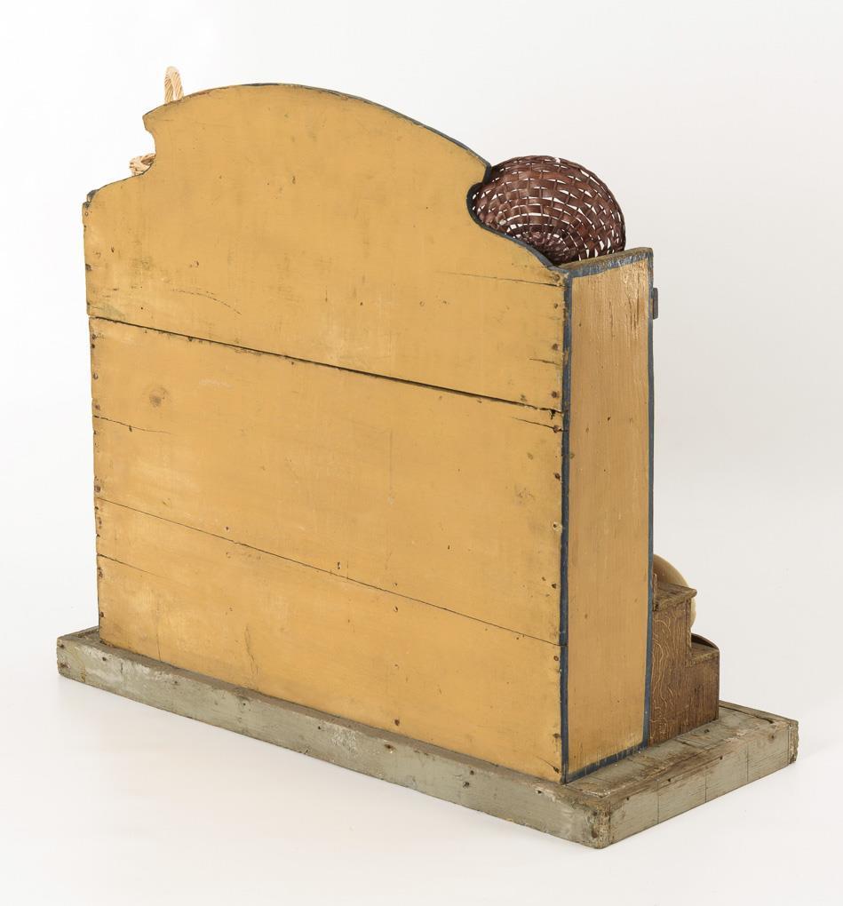 Holz, farbig bemalt. 48 x 54 x 23 cm.
