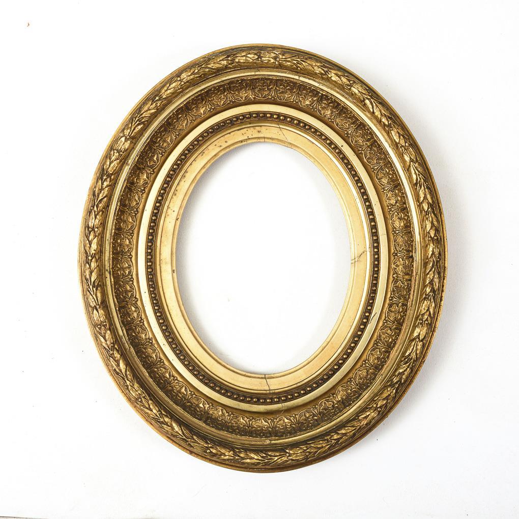 Stark profilierter Rahmen im Stil des Klassizismus mit Blattfriesen. Einige kleinere Risse und Ausbesserungen.