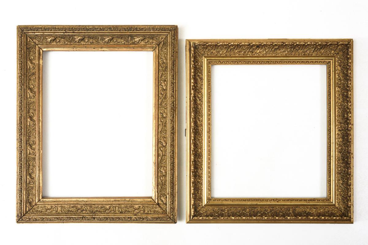 Profilierte Goldstuckrahmen mit umlaufenden Jugendstil-Friesen. Einige wenige Alters-/Gebrauchsspuren.