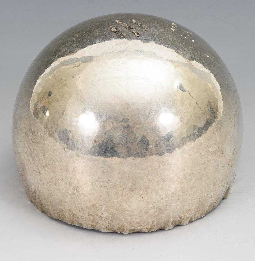 Handgetriebene Vase mit gewelltem Rand. Reste von Henkelansätzen innen.