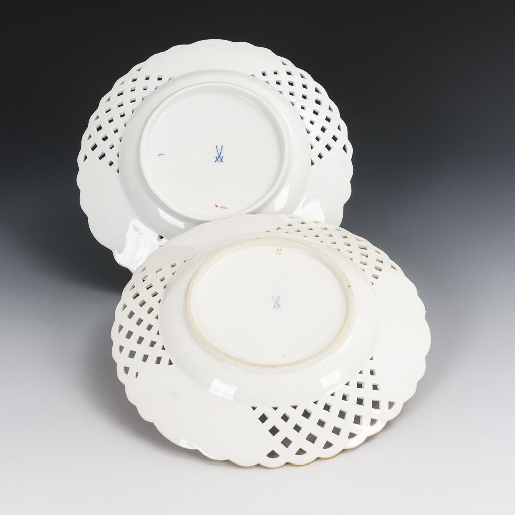 2 Durchbruchteller mit Blumenmalerei. Meissen.