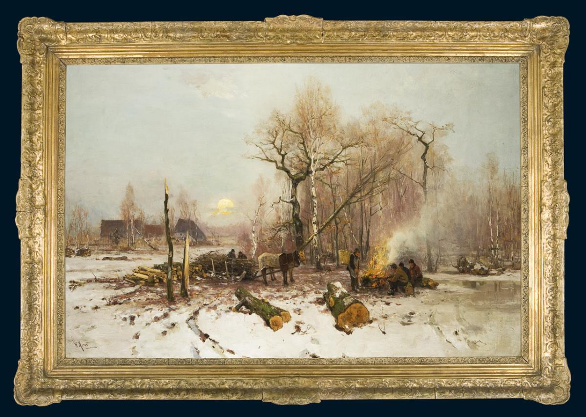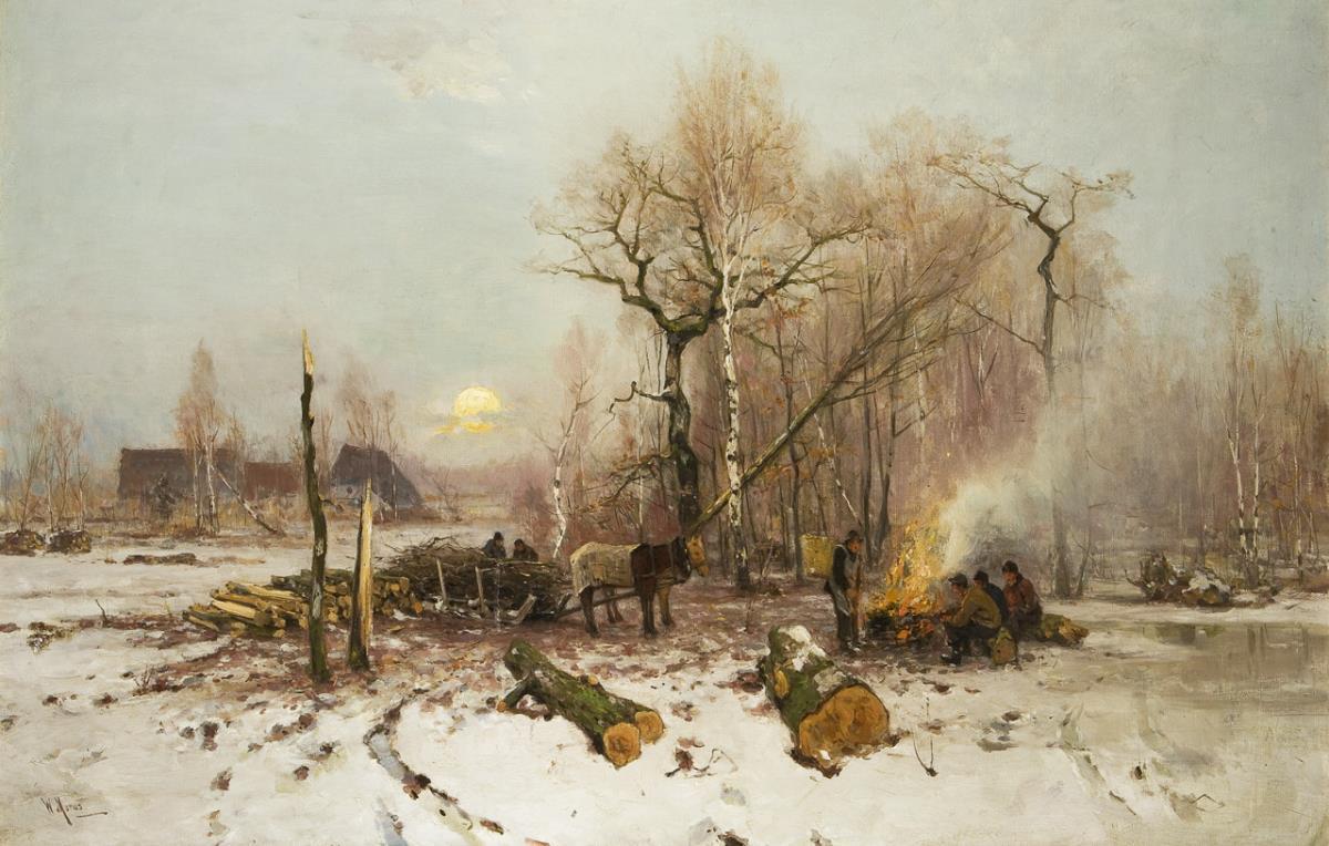 Holzfäller in romantischer Winterlandschaft (Nachtrag im Text)
