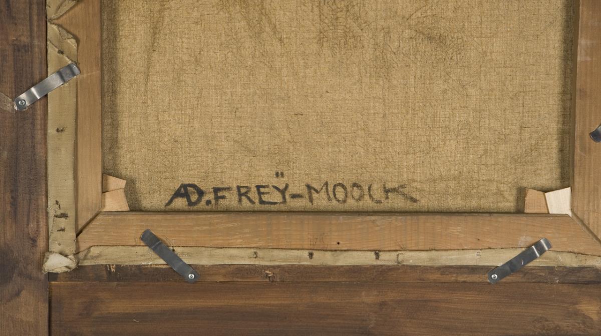 Frey-Moock, Landschafts-, Porträt- und Historienmaler. Studierte an der Gewerbeschule in Sankt Gallen und an der Akademie in München. Schüler von Karl Raupp und Wilhelm von Diez. 1909 im Atelier von Franz von Stuck. Bei Aufenthalten in Florenz und Rom befasste er sich mit der griechischen und römischen Mythologie. Mitglied im Reichsverband bildender Künstler Deutschlands * Partnerauktion Bergmann.