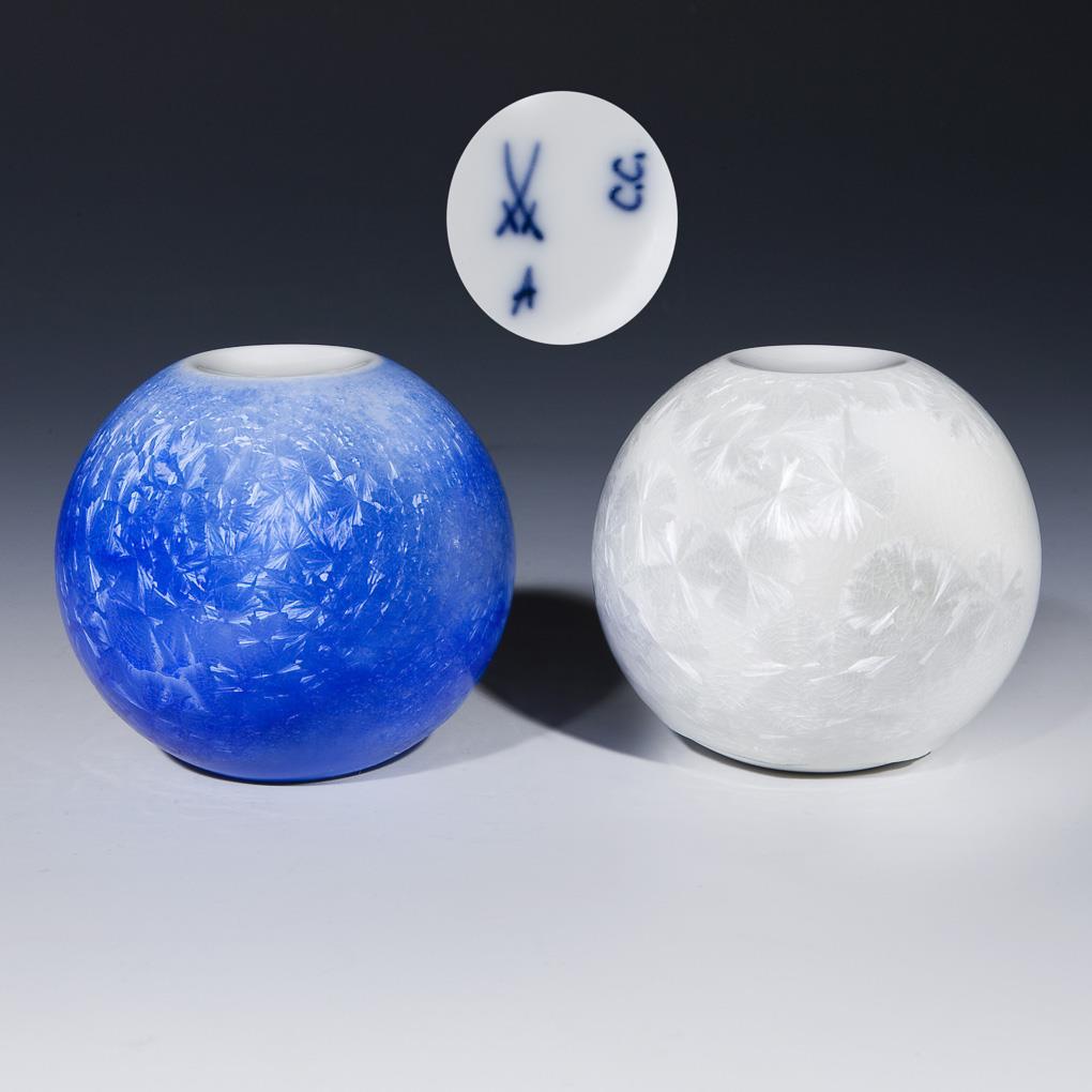 Zwei Briefbeschwerer mit Kristallglasur. Meissen.
