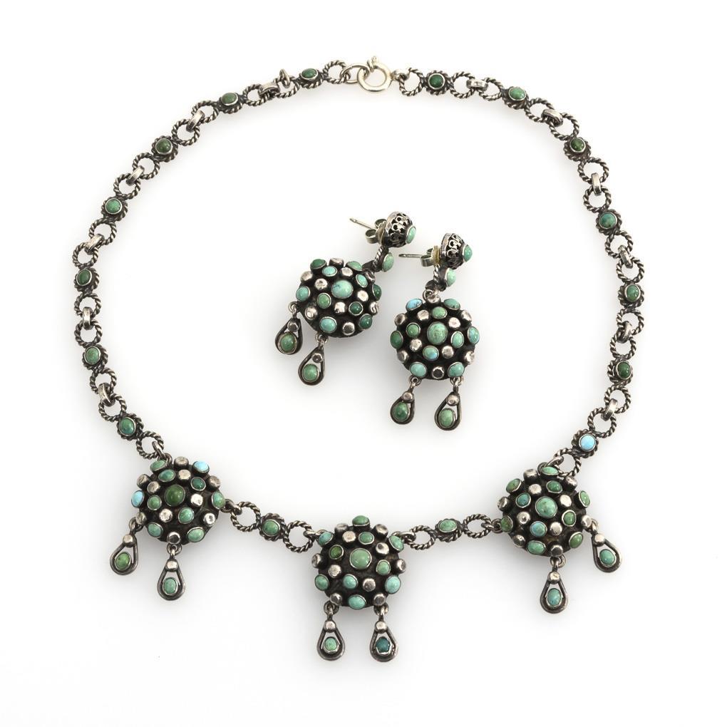 Collier und Ohrhängerpaar mit Türkisen.