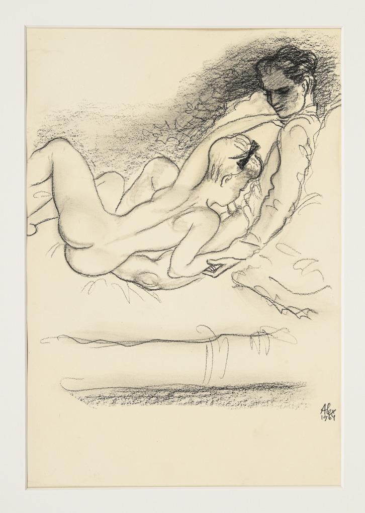 1 von 15 Kreidezeichnungen der Künstlermappe "La dolce vita", 1964.