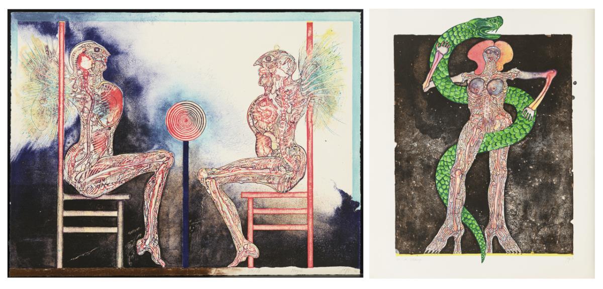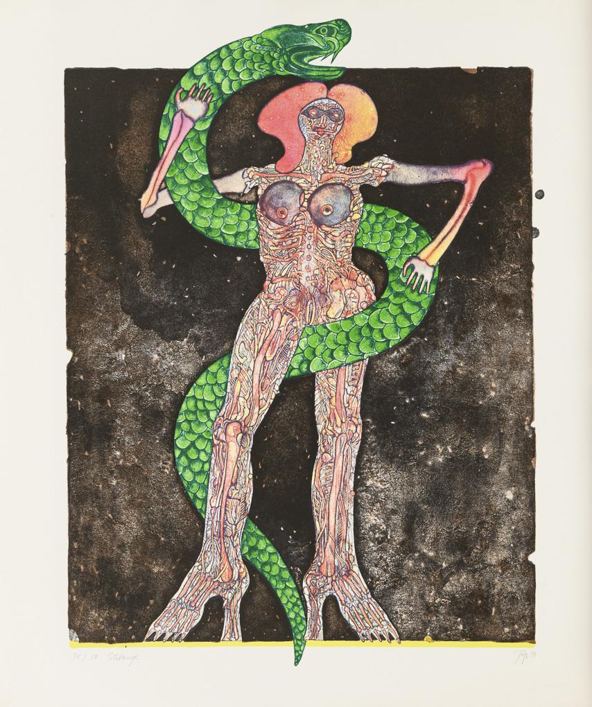 "Magie", Blatt: 48,5 x 65 cm, Exemplar: 54/80, [19]70 | "Schlange", Blatt: 76 x 64 cm, Exemplar: 35/50, [19]73.