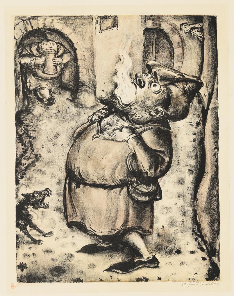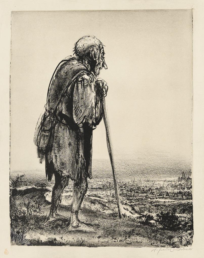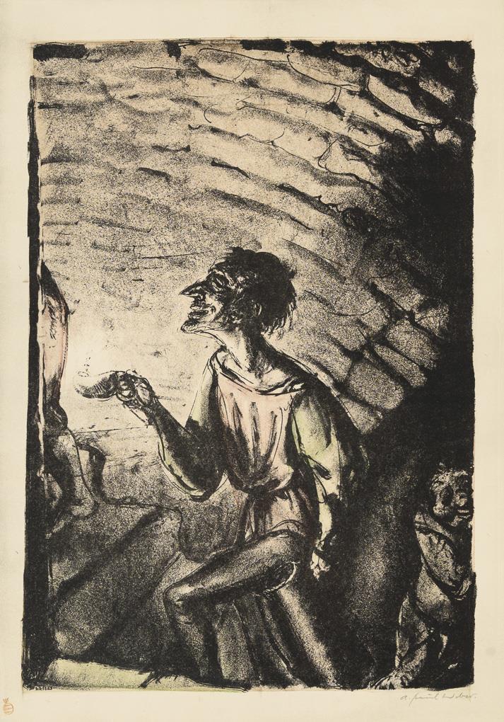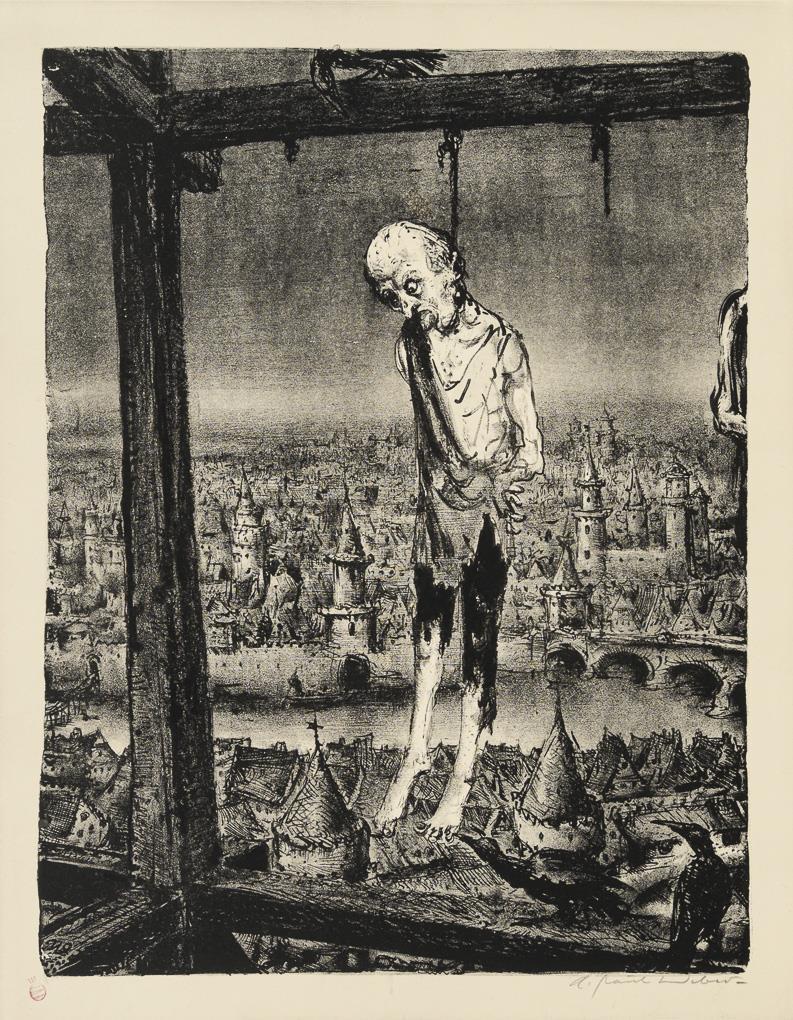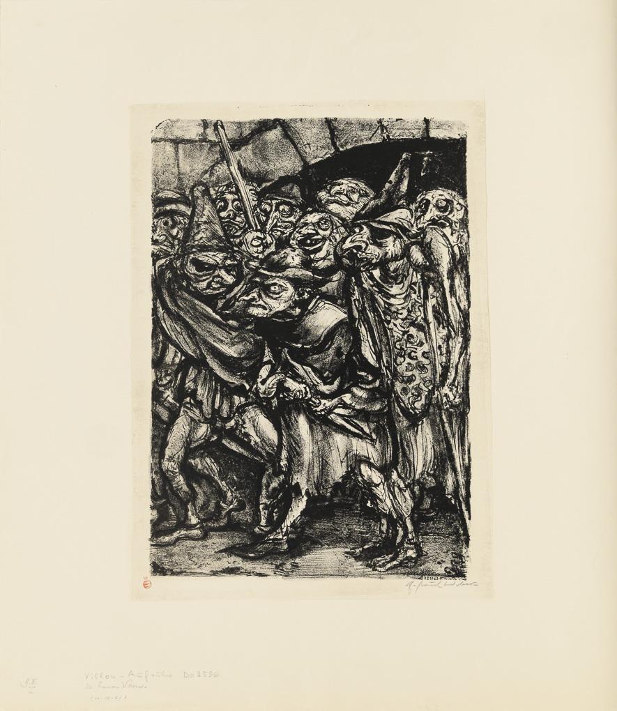 "Villon steigt aus dem Kerker hoch", Blatt: 75,5 x 63 cm | "Villon - Der Wanderer", Blatt: 62 x 53 cm | "Villon - Brief aus dem Kerker", Blatt: 47,5 x 39,5 cm | "Villon -Zerpiekt von Vögeln", Blatt: 61 x 53,5 cm, Wasserzeichen mit Künstler-Signet | "Villon - Aufruhr", Blatt: 60,5 x 53,5 cm, Wasserzeichen mit Künstler-Signet | "Villon - Fürst und Tod". Blatt: 63 x 48 cm, Wasserzeichen mit Künstler-Signet | "Villon - Jean Cotard", Blatt: 73,5 x 62,5 cm | "Villon - Die dicke Margot", Blatt: 71 x 57 cm. Teils mit kleinen Knicken, minimal griffspurig.