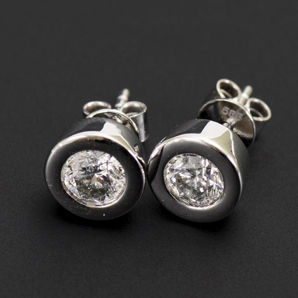 Weißgold 585 gestempelt. Punze: Ahornblatt. Ø 0,8 cm. Brillanten zusammen ca. 1,0 ct/Weiß/PI. 3,1 g.