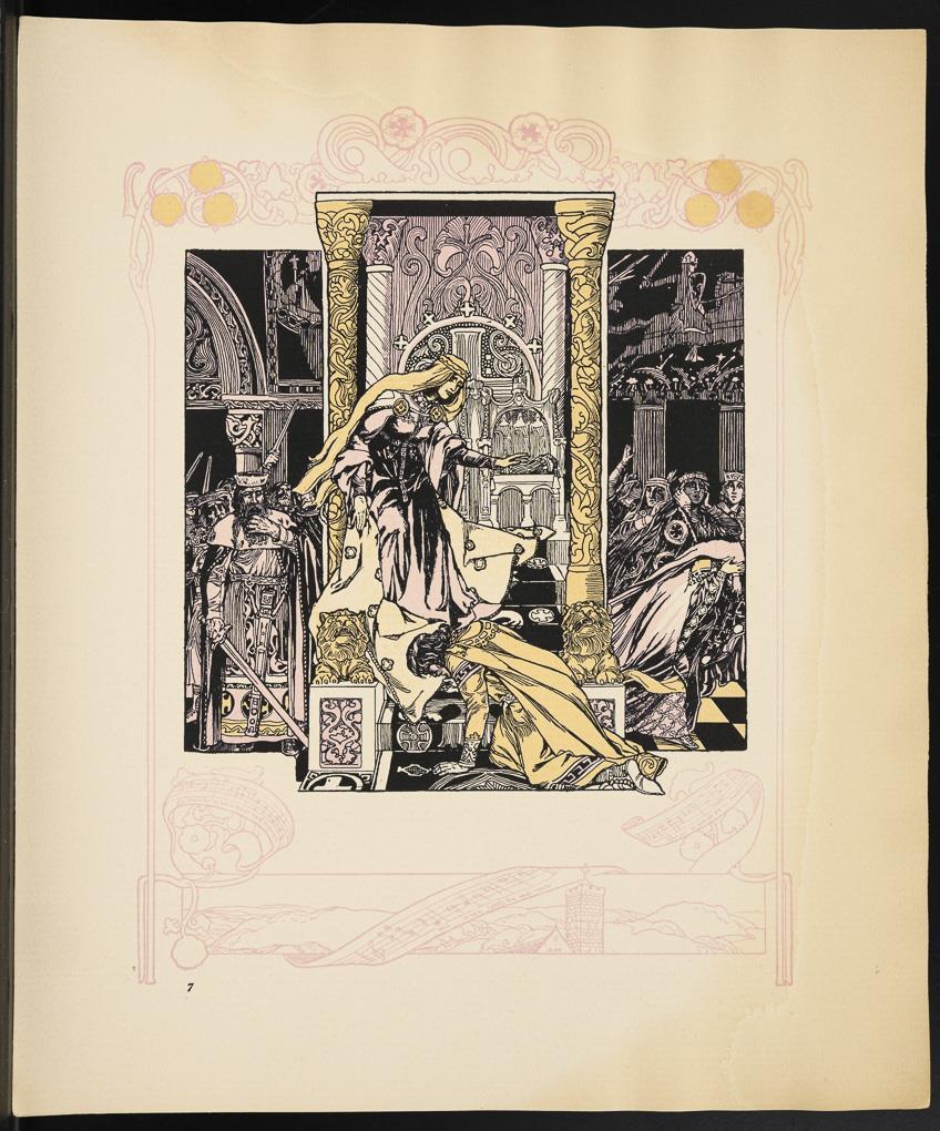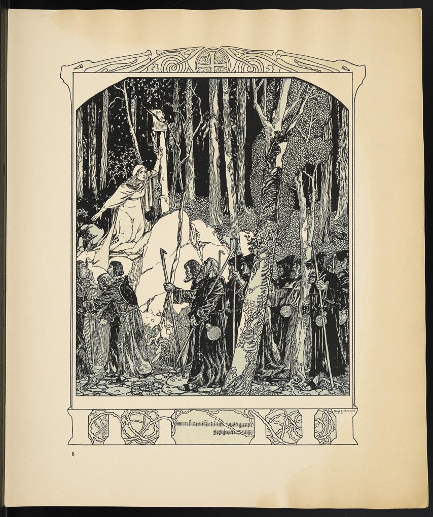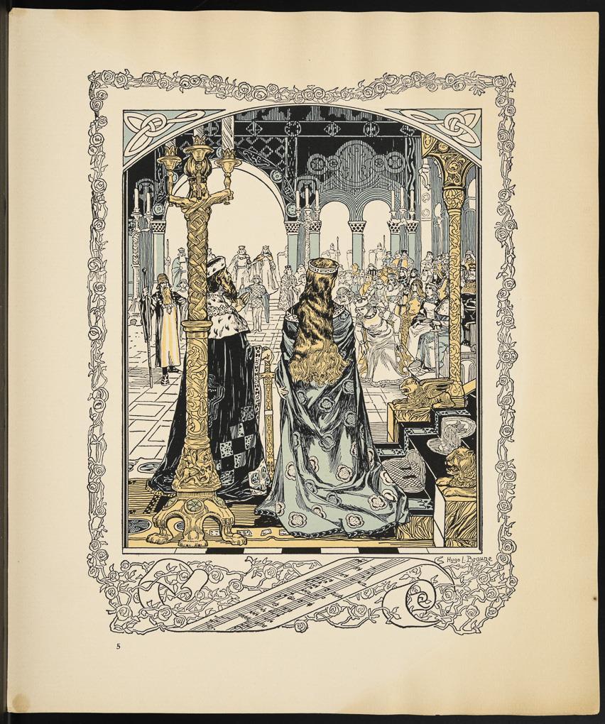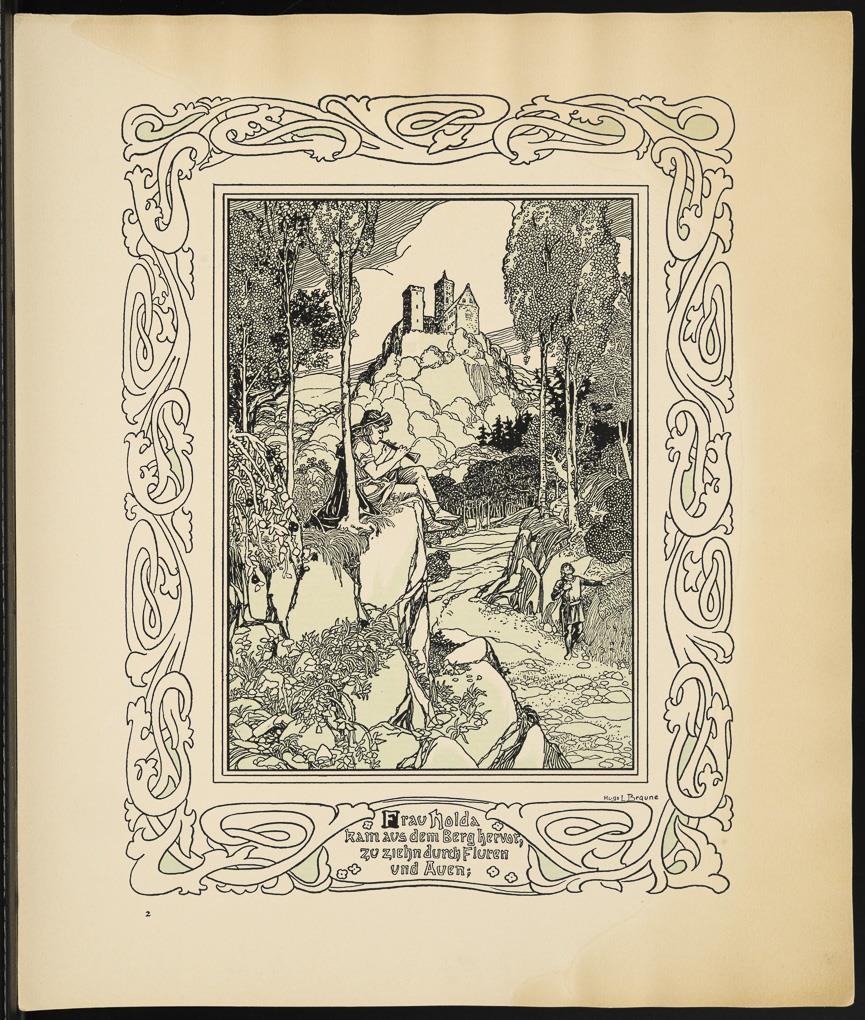 Vollständige Mappe mit 10 Illustrationen zu Richard Wagners "Tannhäuser und der Sängerkrieg auf der Wartburg" von Hugo Ludwig Braune; originaler Papp-Umschlag, Titelblatt mit Inhalt, verlegt von C.F.W. Siegels Musikalienhandlung R. Linnemann, Leipzig; aus der Reihe "Richard Wagner´s Bühnenwerke in Bildern dargestellt v. Hugo L. Braune". Blätter mit Wasserschaden, Umschlag geklebt, leicht griffspurig.