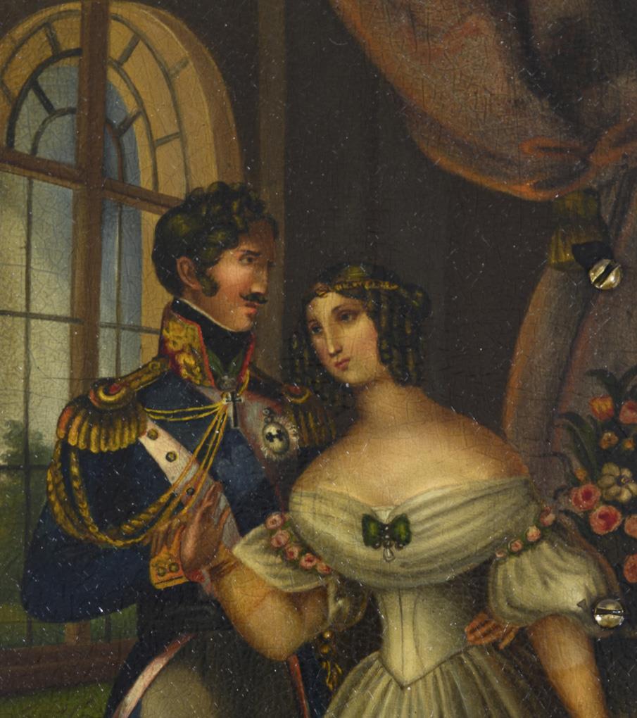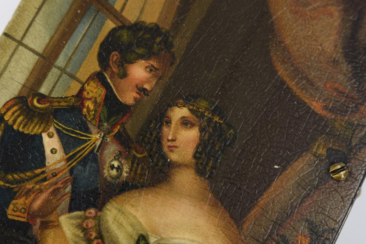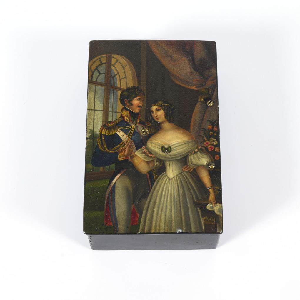 Lackdose mit preussischem Offizier und Dame.
