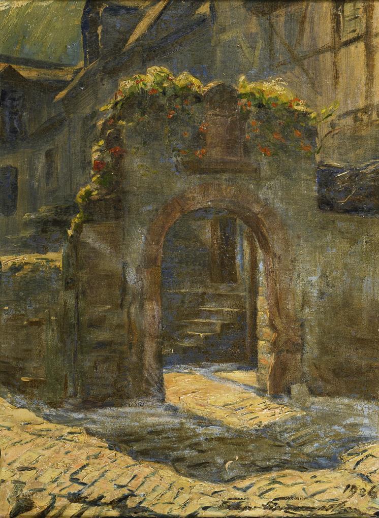 Öl/Malkarton. Rechts unten signiert. Datiert: 1936.