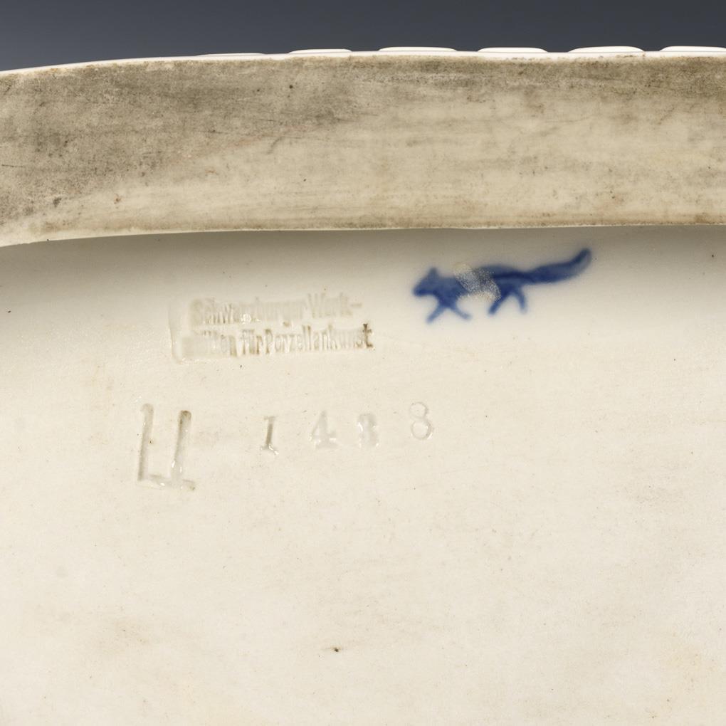 Geprägte Schriftmarke und Blaumarke Schnürender Fuchs, nach 1926, 1 Schleifstrich. Modell-Nr.: U 1438. Entwurf: 1928. KRAMER, Otto(1890-1978)
