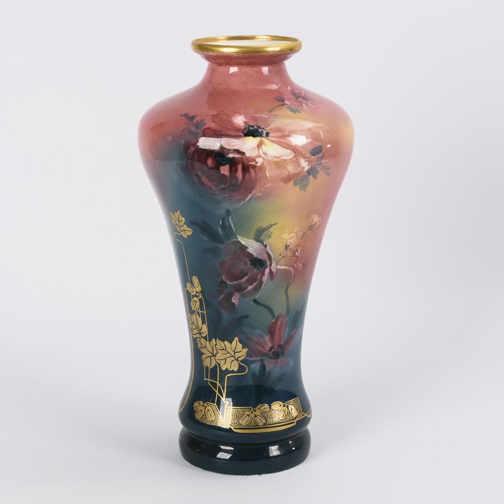 Große Jugendstil-Vase mit Herbstanemonen. Karlsbader Porzellanfabrik Carl Knoll.