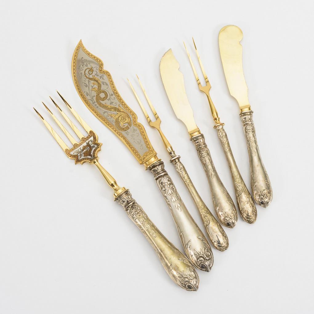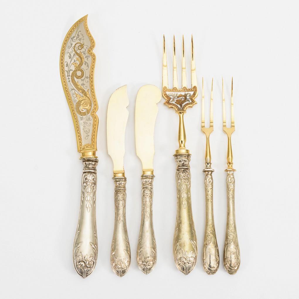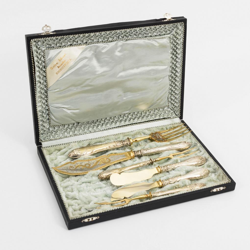4 + 2 Teile Vorlegebesteck in Kasten.