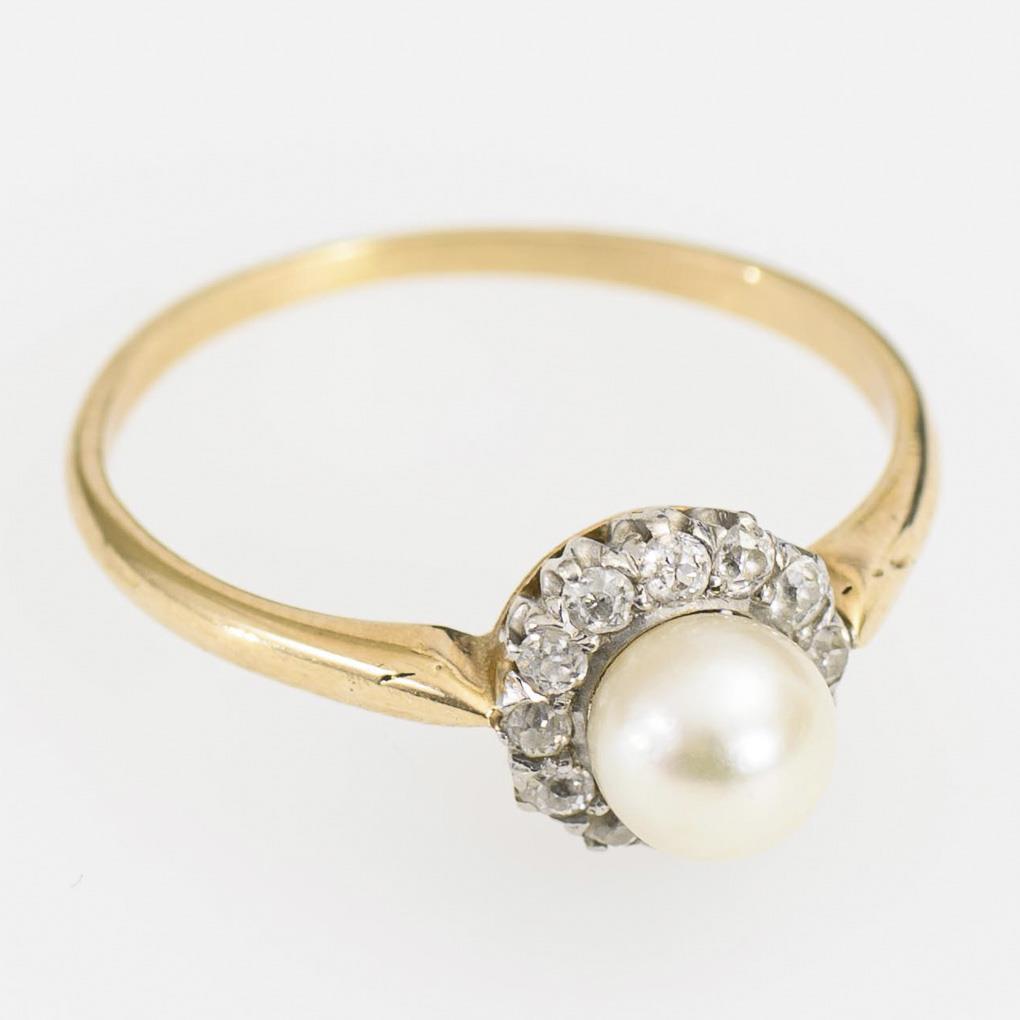 Ring mit Zuchtperle und Altschliff-Diamanten.