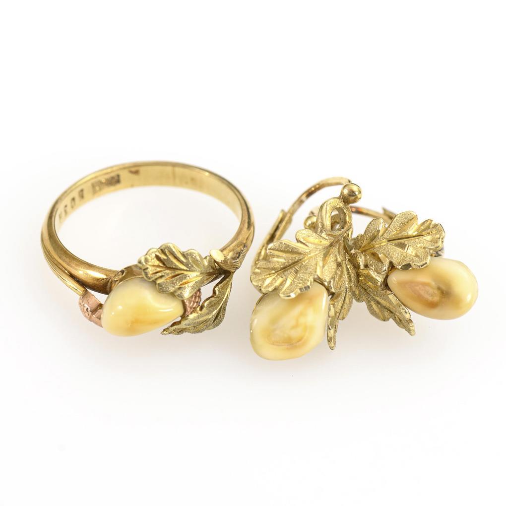 Ring und Ohrhängerpaar mit Grandeln.