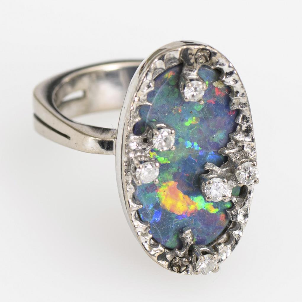 Schwerer Ring mit Opaltriplette und Brillanten.