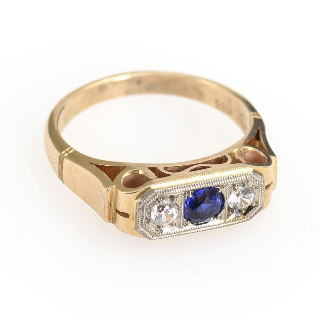 Ring mit blauem und farblosen Steinen.