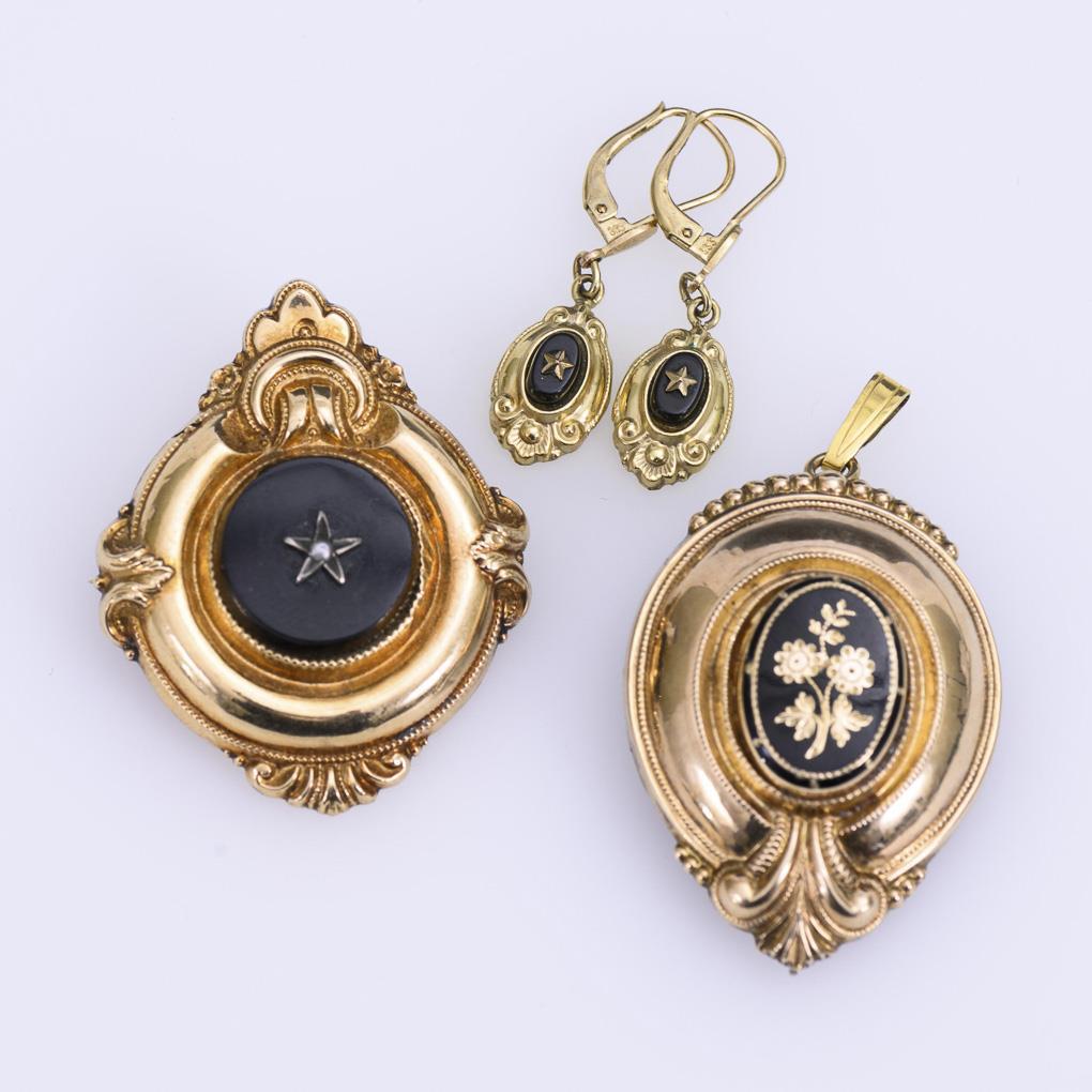3 Teile Biedermeierschmuck.