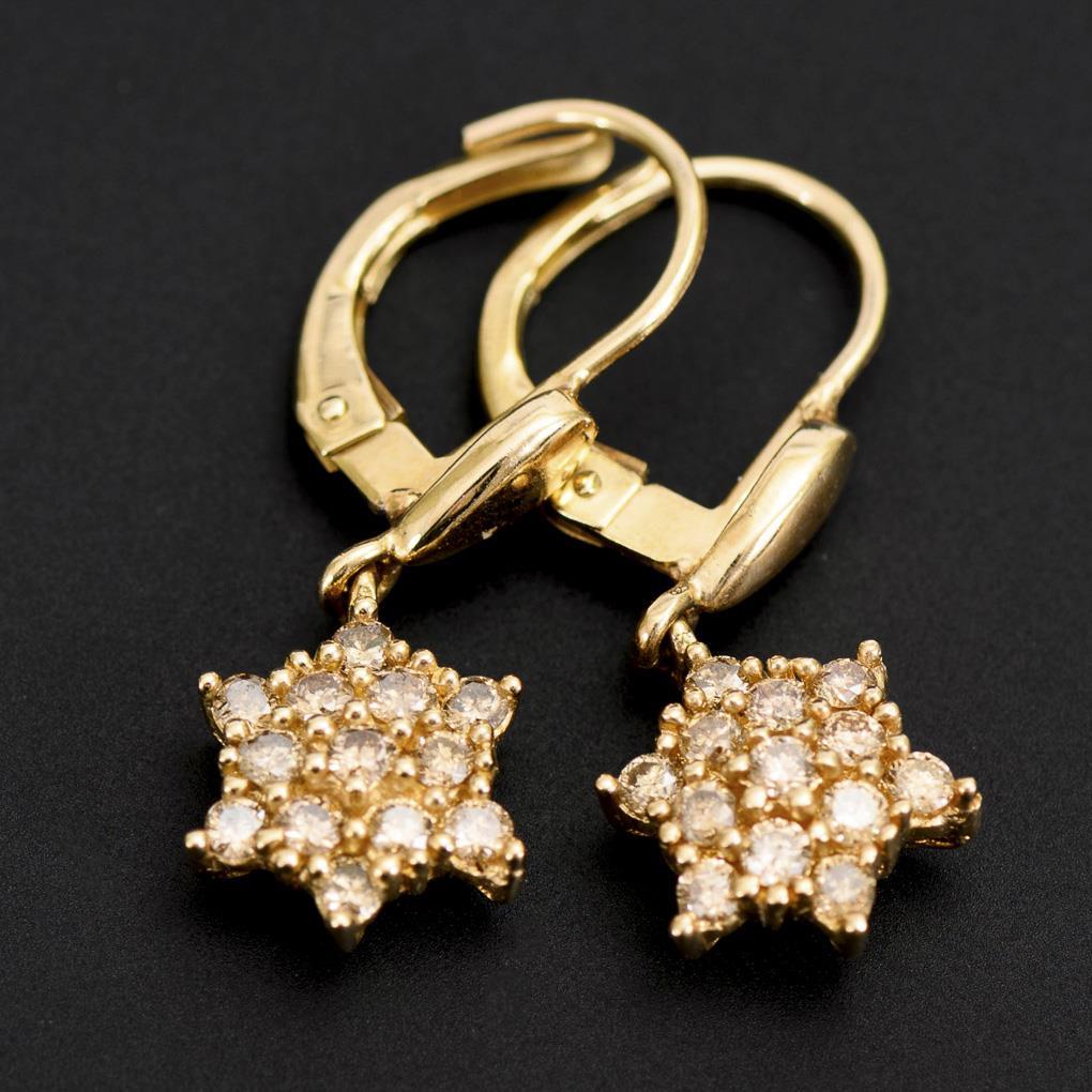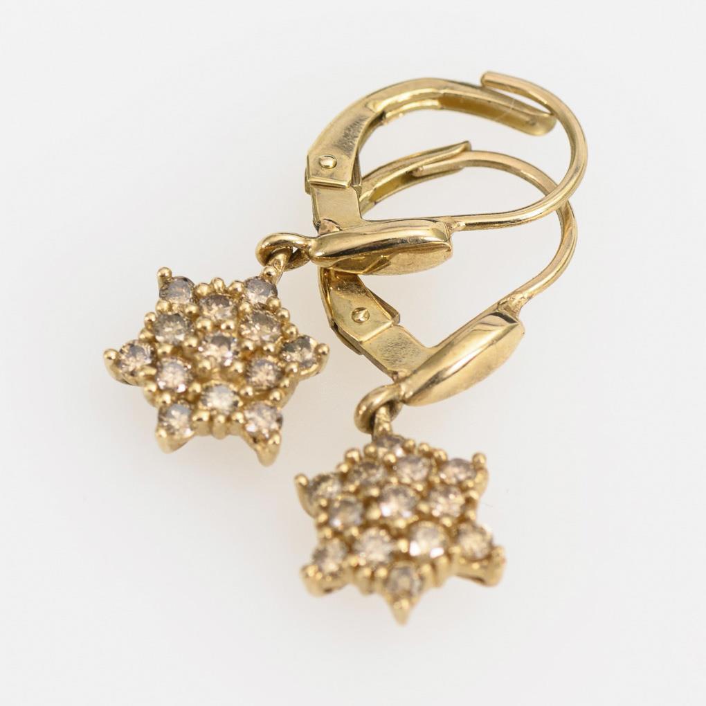 Abhängungen mit je 13 kleinen, cognacfarbenen Brillanten, an Federbügel.