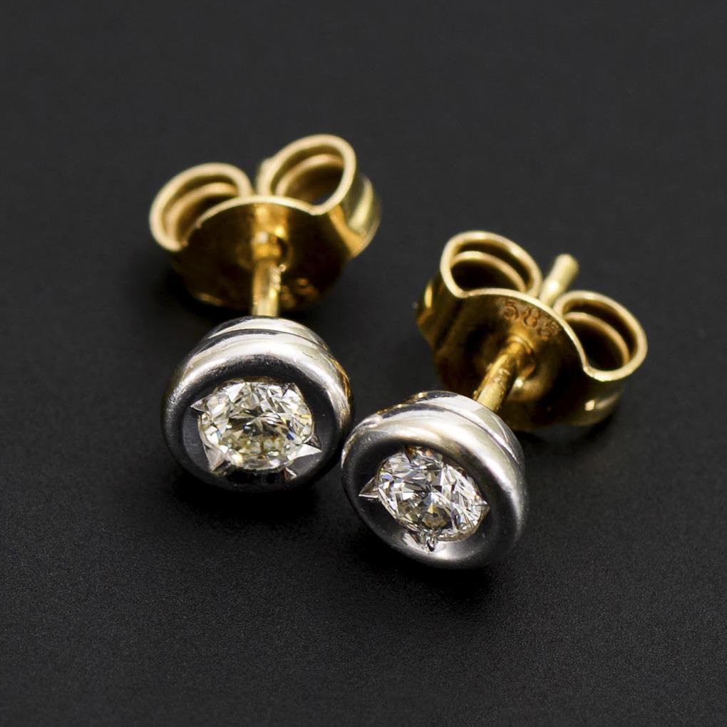 Weißgold/Gelbgold 585 gestempelt. Ø 0,5 cm. Brillant Ø 3,4 mm. 1,4 g.