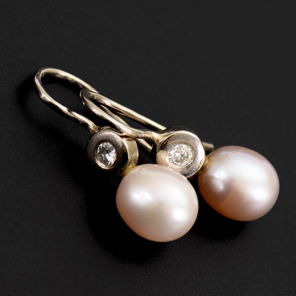 Zargengefasster, kleiner Brillant und Zuchtperle, an Einhängehaken.
