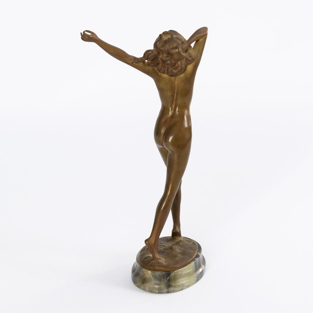 Ausgelassen laufender Akt einer jungen Frau . Goldbronzierung berieben, geringe Alters-/Gebrauchsspuren.